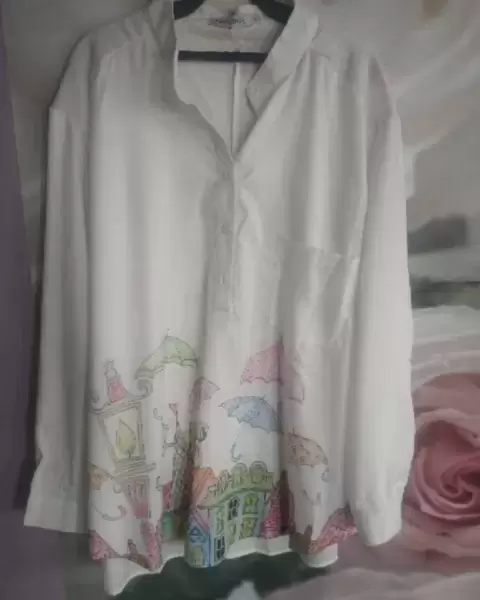 Blusa calles. Hermosa y cómoda blusa estampada al frente, manga larga pero puede recogerse, corte A. Medidas dehombro a hombro 50 y 75 de largo, (es como talla M) de axila a axila 58 cm. En excelente estado.