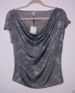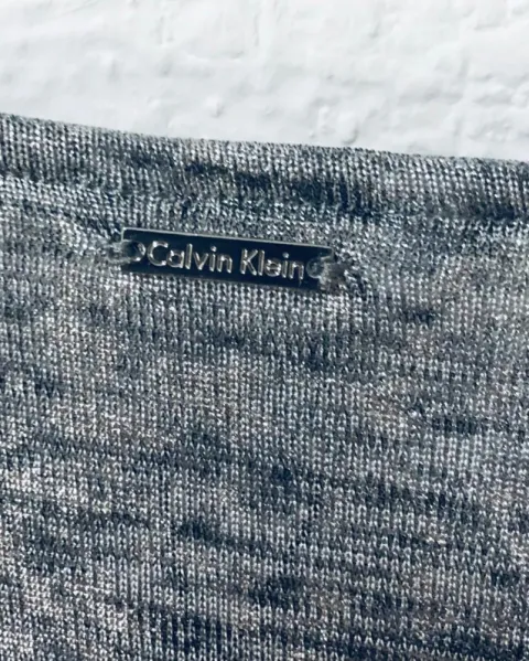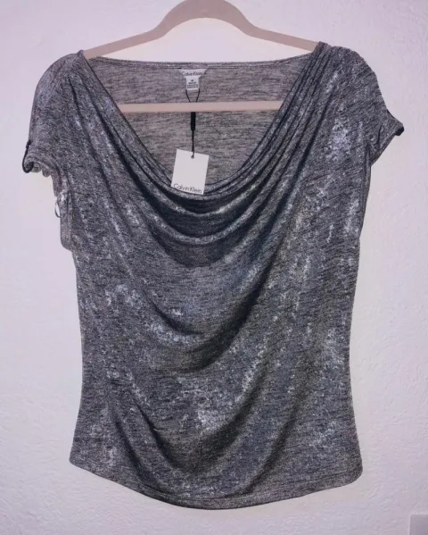 Blusa metálica color plateado marca Calvin Klein NUEVA con etiqueta !!!Medidas: axila a axila 53 cm, largo 62 cm.Todo se envía limpio y desinfectado.