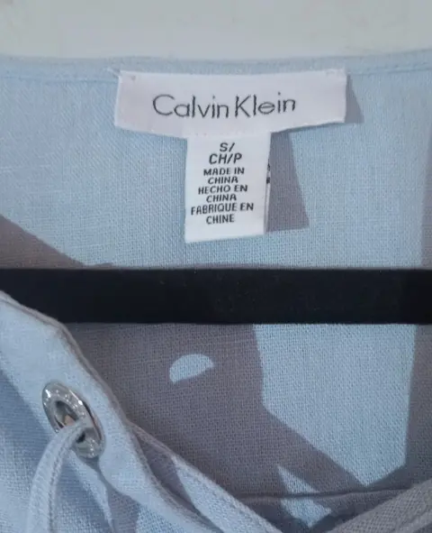Blusa Calvin Klein 😍. Hermosa Blusa Azul Cielo 👚💙Marca Calvin Klein ®️Talla SMedidas📏Hombros 42 cms.Pecho 50 cms. Ambos lados 100 cms.Cintura 55 cms. Ambos lados 110 cms.Cadera 60 cms. Ambos lados 120 cmsLargo 65 cms.Manga 43.5 cms.Composición Lino 55% Rayón 45% 🥰🛒🛍️🎁🧳✈️🌉🌇🌃🛣️🌅🏖️🏞️🪩🤩👚💙🥰🤗💖