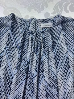 Blusa Calvin Klein. Blusa sin mangas, cuello redondo con pliegues, tela de poliéster. Talla S.Medidas/ busto: 42 cm, cintura: 40 cm, largo: 57 cm.