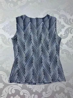 Blusa sin mangas, cuello redondo con pliegues, tela de poliéster. Talla S.Medidas/ busto: 42 cm, cintura: 40 cm, largo: 57 cm.