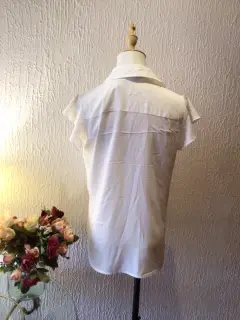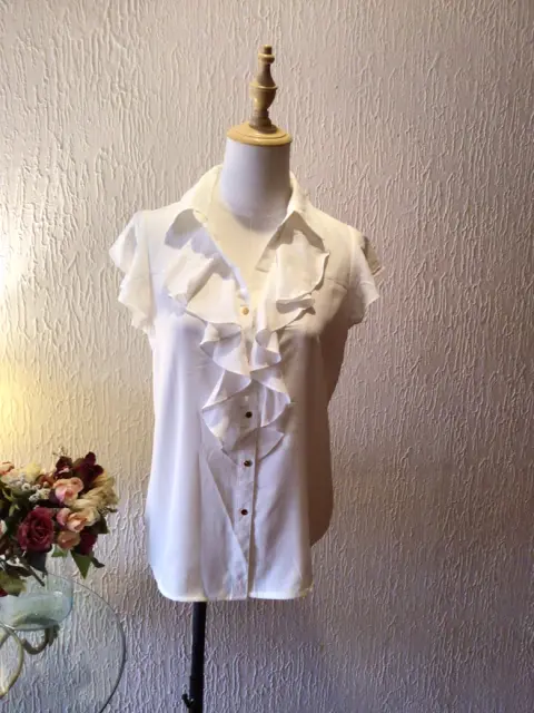 BLUSA TALLA XS QUEDA A S CON OLANES FRONTALES MANGA CORTA, CON SEMI OLÁN, BOTÓN EXTRA HERMOSA TELA, BOTONES LINDOS MARCA CALVIN KLEIN COLOR BLANCO