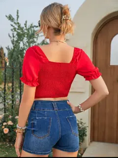 OLISGAR BLUSA TOP CROP MANGA DE FAROL FRUNCIDO EN ESPALDA