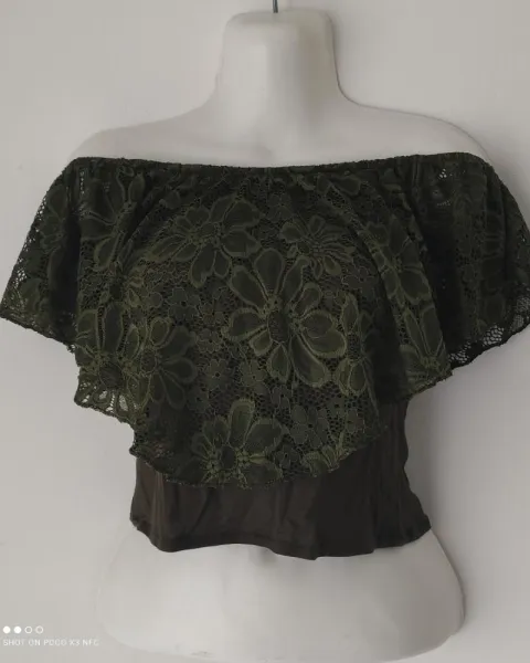 Blusa campesina con encaje muy bonita de color verde militar talla S .