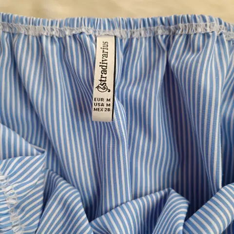 ¡Blusa campesina azul, estilo boho chic! Talla M, Stradivarius. ¡Comprala ya y agrega un toque de campo a tu outfit! 🌊👗