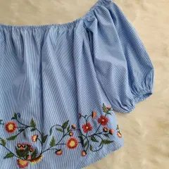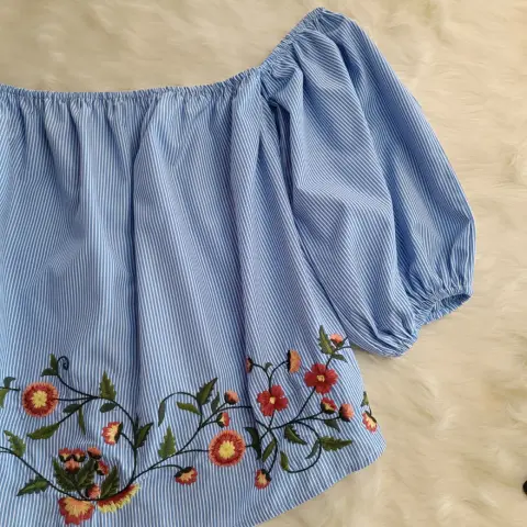 Blusa campesina Stradivarius. ¡Blusa campesina azul, estilo boho chic! Talla M, Stradivarius. ¡Comprala ya y agrega un toque de campo a tu outfit! 🌊👗