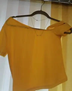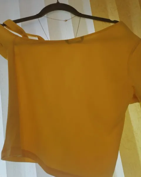 Blusa canario. Blusa de hombro descubierto color amarillo incluye el collar de acero inoxidable