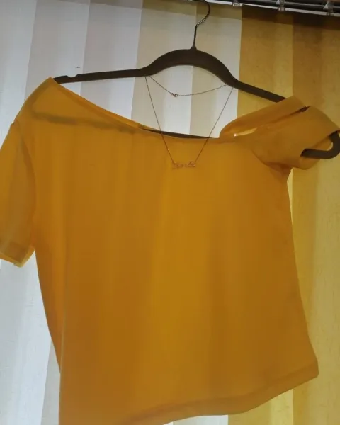 Blusa de hombro descubierto color amarillo incluye el collar de acero inoxidable