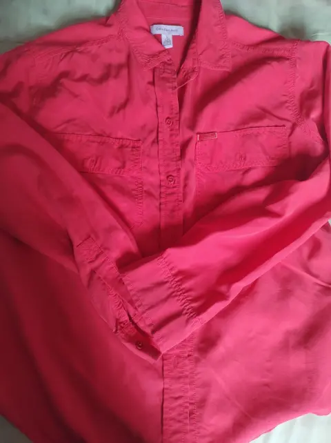 Blusa Casual. Excelente blusa manga larga con bolsas al frente,botones talla S color naranja