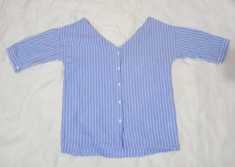 Blusa casual. Blusa celeste con líneas y botones en la espalda talla S