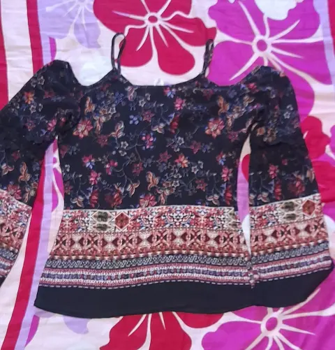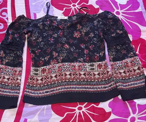 LINDA BLUSA CASUAL.TELA SUAVE Y FRESCATIENE BONITOS ADORNOS EN LA MANGA DE ENCAJE.SUS MEDIDAS SONANCHO 35CMLARGO 50 CMNO TIENE LICRA!!