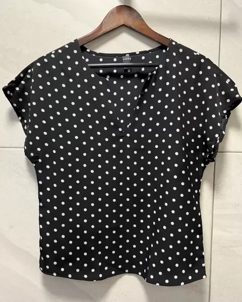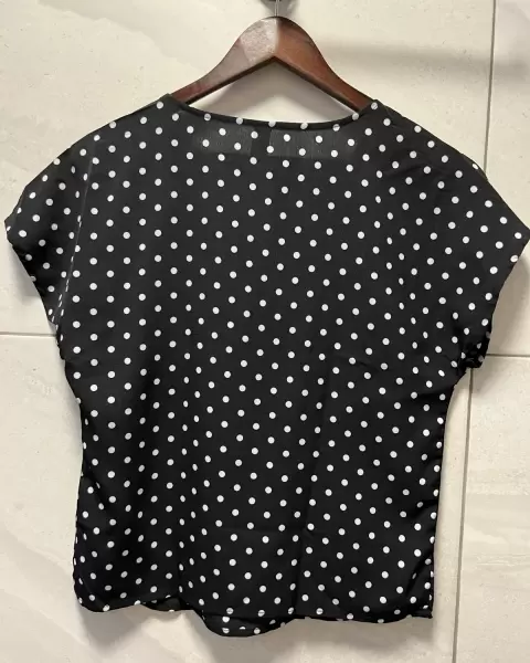 Blusa casual NUEVA SHEIN. Negra con puntos blancos. Talla XSMedidas:Hombro: 36cm Largo: 60cm Pecho: 110.5 cm