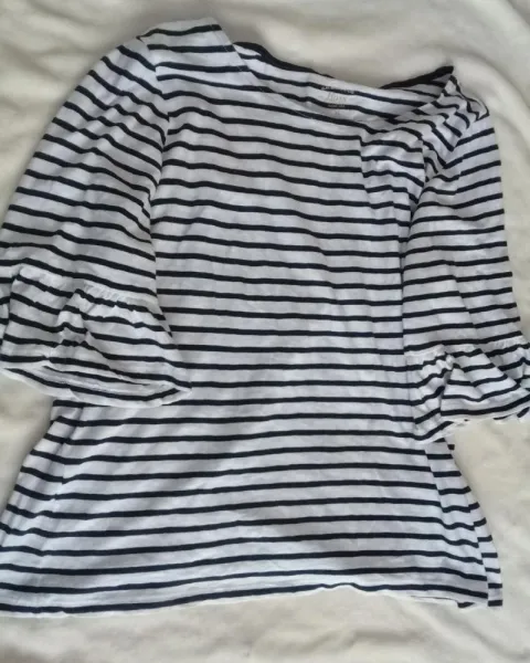 Bonita blusa a rayas, mangas con olan, ligera, casual, comoda, 100% algodón🎀De uso pero en excelente estado❣