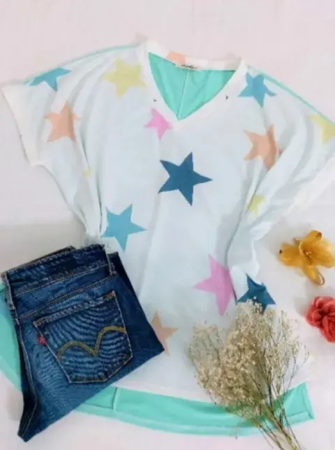 Blusa casual estampado. Padrísima!!Blusa con estrellas, queda holgada, es Nueva (sin etiqueta) y tiene strech. Talla 2XL.