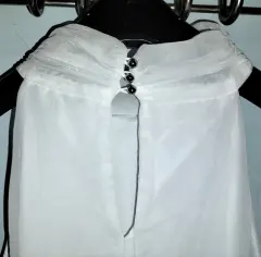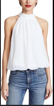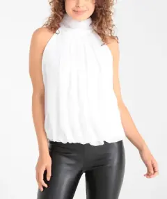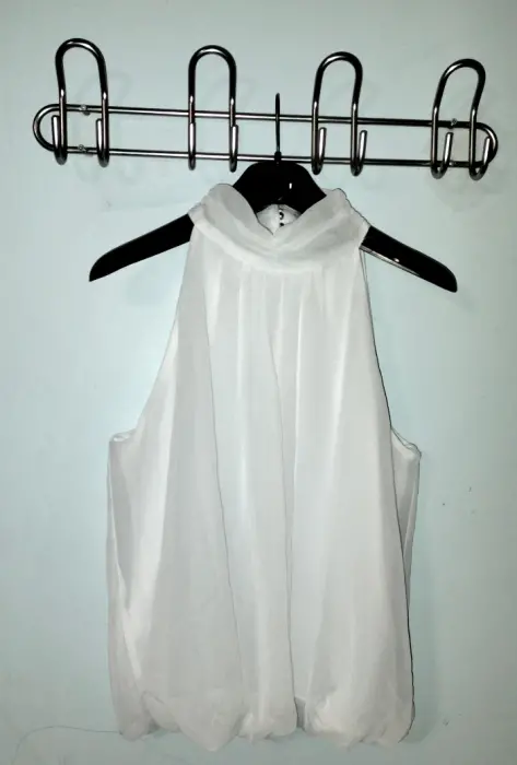 Blusa casual halter. Descripción:Blusa casual sin mangas halter color blanco trae forro con resorte abajo es tela chifón talla EG 36/38 es totalmente nueva solo se midió pero no se usó no tiene desperfectos luce muy padre subí fotos ilustrativas de como se ve puesta 🌇🥰🛍️👠