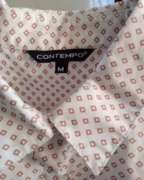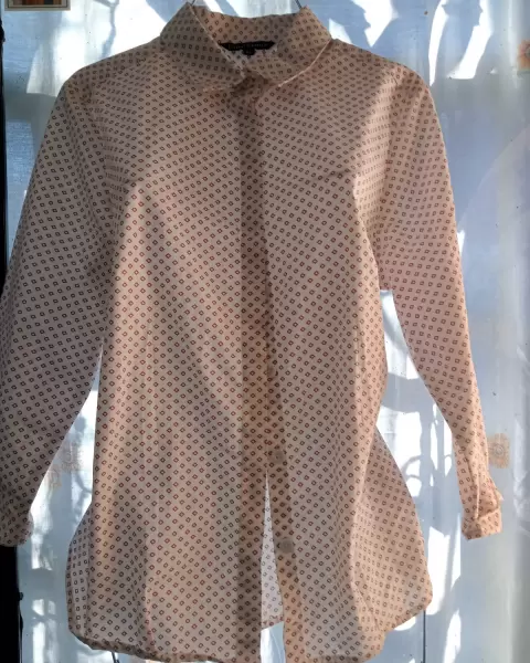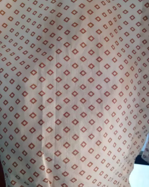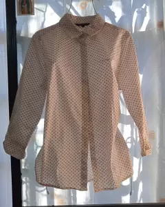 Preciosa blusita formal blanca con estampado de rombos color chedron, perfecta para la oficina o para un look más casual