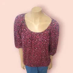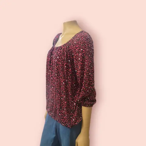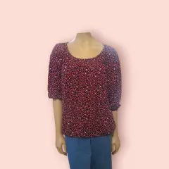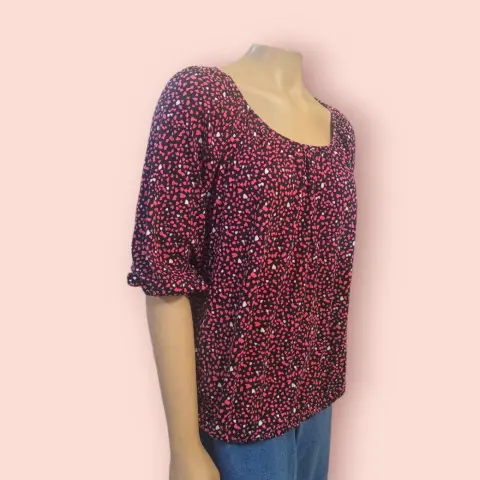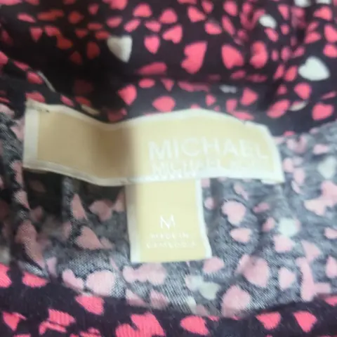 Blusa casual Michael Kors, talla mediana, colores de corazones rosa, rosa y blanco, cuello redondo, manga 3/4 con elastico, estilo recto con elastico en la cintura, hecha de Algodón y modal, mide 51cm de hombro a hombro, 46cm de axila a axila, 54cm de cintura, 46cm de manga con 56cm de largo del hombro hacia abajo en buen estado cosmetico.