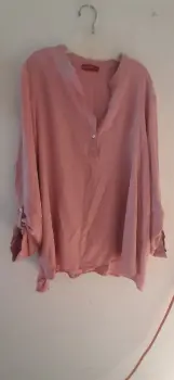 Blusa casual rosa manga larga enrollable. Ligeramente elastica, tono rosa suave. Las mangas se enrollan, cuello redondo, cubre bien el vientre.