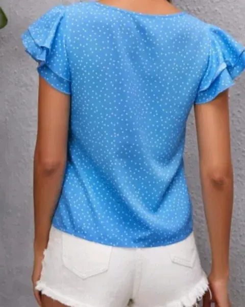 Blusa casual azul de la marca Shein, la blusa es nueva y sin detalles, la tela es fresca y ligera ideal para las actividades del diario, esta muy bonita sus medidas son:Hombro: 36.5 cmLargo: 60.5 cmLargo de la manga: 13 cmPecho: 103 cmContorno de cintura: 103.5 cmPuño: 88.6 cm