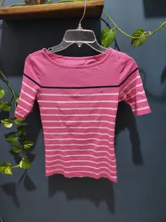 Hermosa blusa rosa con lineas, muy fresca y cómoda, excelente estado, manga tres cuartos