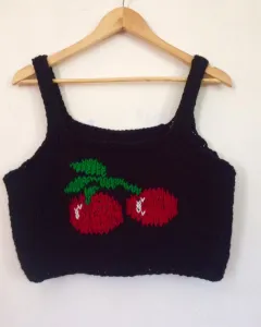 Blusa cerezas. Es una blusa nueva sin etiqueta, 100 % handmade de excelente calidad puede usarse como blusa o chalequito, súper en tendencia.Es unitalla pero queda desde S (oversize) hasta L.
