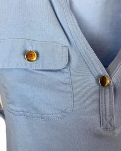 Blusita Charter Club azul cielo, con mangas 3/4 y bonitos detalles de bolsa y botón al frente.