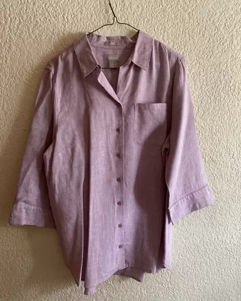 Blusa de manga 3/4, la tela es súper fina de lino , perfecta para el calor , súper fresca . La talla equivale a XL