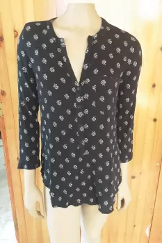 Blusa cola de pato tipo tunica. Blusa tipo tunicaTalla sp 18" ancho 29" largoMarca old navyColor Azul con diseño de hojas y raíz