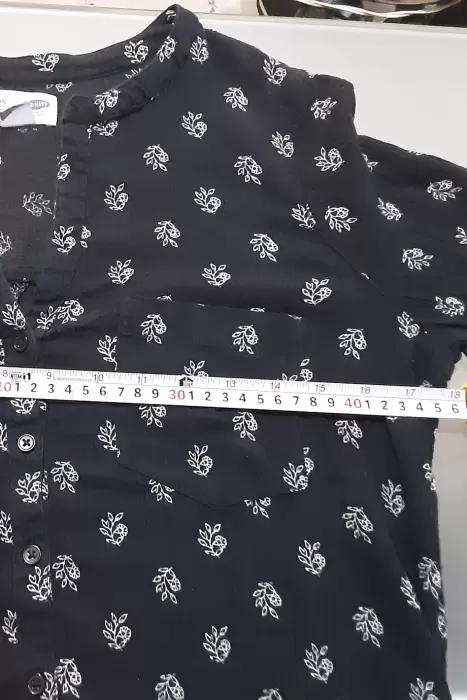 Blusa tipo tunicaTalla sp 18" ancho 29" largoMarca old navyColor Azul con diseño de hojas y raíz