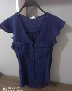Blusa Azul marino en cuello V Con botonesColor azul marinoTalla s