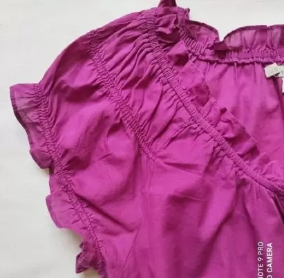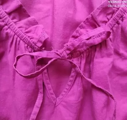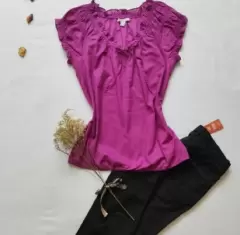 Blusa color betabel. Bonita blusa olgada, ligera y fresca con mangas aglobadas y cintas en cuello para hacer moño, en su parte baja es de resorte