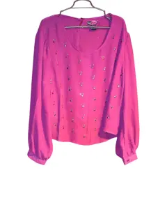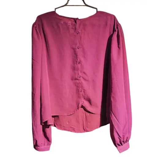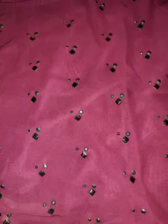 Linda blusa color bugambilia es nueva es delgadita tipo gasa y está muy hermosa las medidas son axila axila 66 cm y largo 68 cm atrás tiene botones y los estoperoles brillan muy bonito