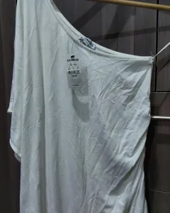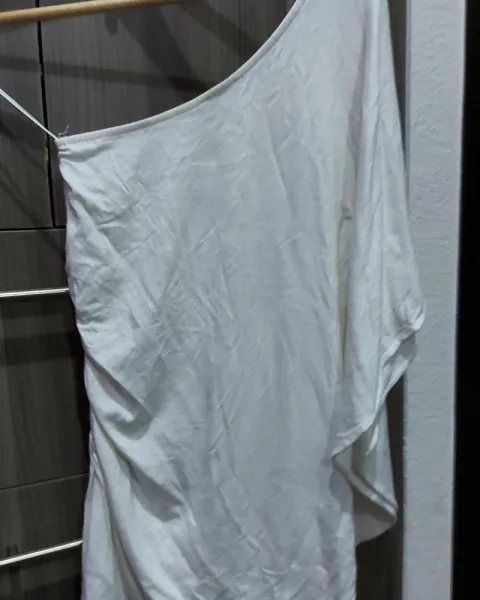 Blusa color hueso de 1 hombro. Super bonita, la tela tiene unos brillitos muy lindos y discretos