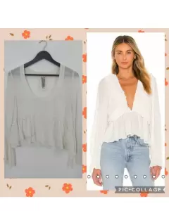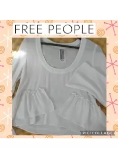 Blusa color hueso Free People. Blusa en buen estado. Sin detalles. Tono hueso. Luce similar a la imagen de referencia (primera foto). Talla XS. La tela es delgadita y si transparenta.De axila a axila: 42 cmLargo: 46 cm