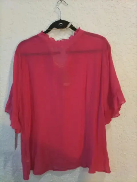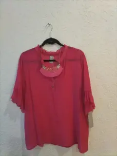 Blusa color rosa mexicano manga corta con collar incluidoTela poliésterTalla 40