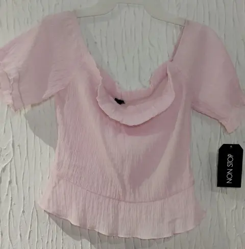 Bonita blusa color rosa pastel tipo top, hombro descubierto, la tela es súper ligera, se transparenta un poco pero es perfecta para el veranoEstá nueva y tiene etiquetaNota: el envío se realiza lo antes posible, pregunta con toda confianza todas tus dudas para que tú compra sea satisfactoria