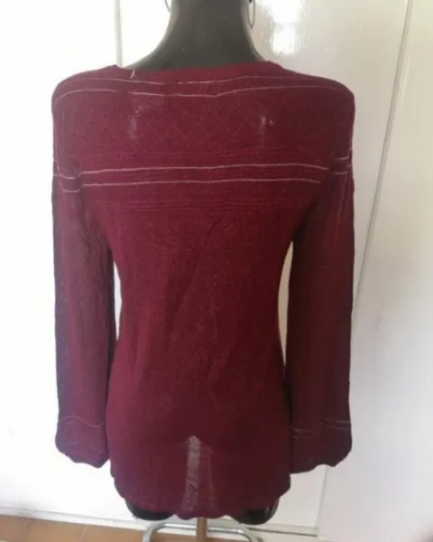 Blusa color vino metálica. La foto no le hace justicia, muy bonita blusa, la tela tiene caída. Nueva con etiqueta
