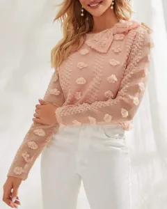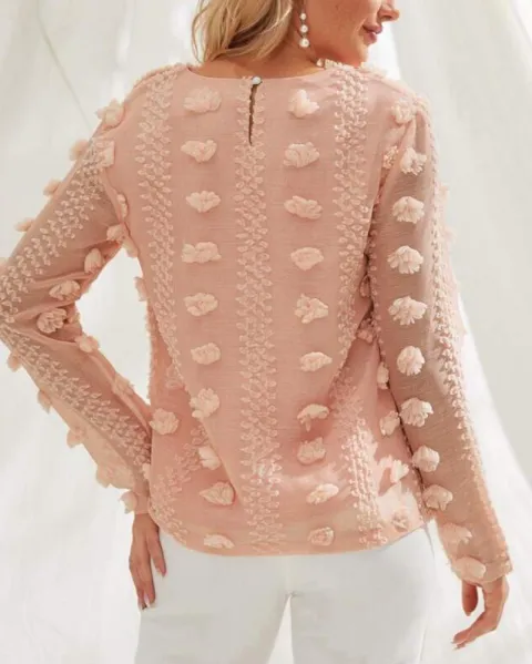 Blusa con apliques de bouquet florales en color rosa de malla por fuera y por dentro tela.