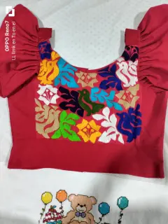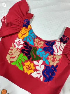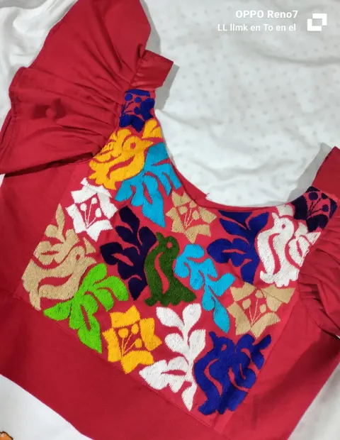 Blusa con bordado a mano de colores....Luce hermoso con falda, jeans o pantalón de vestir..Hilo de algodón...Tela : manta fresca...Medidas:Busto 48 a 50 cm x2Cintura 38 a 40 cmLargo 47 cmCierre en la parte de atrás...Elaborada..