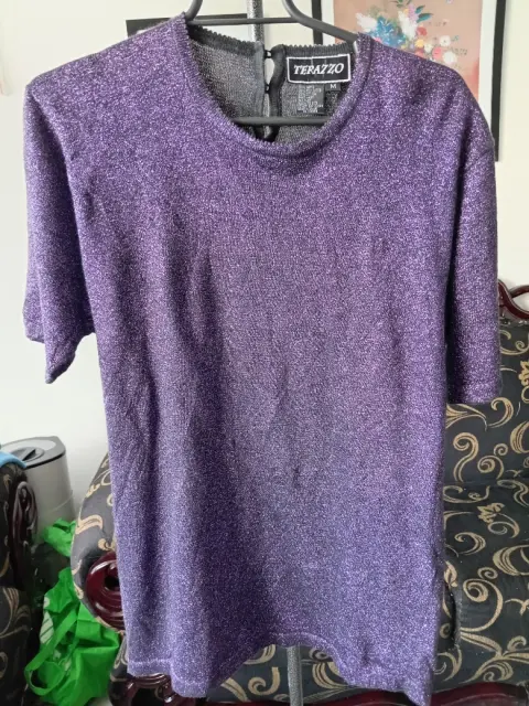 Blusa con brillos. Hermosa blusa morada con brillos y botones por detrás, talla M.Marca Terazzo