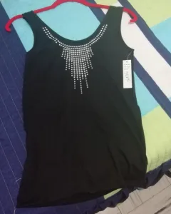 Blusa con brillos al frente. Blusa de tirantes ancho negra con brillos en el frente