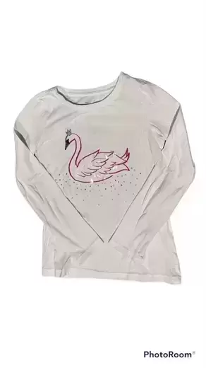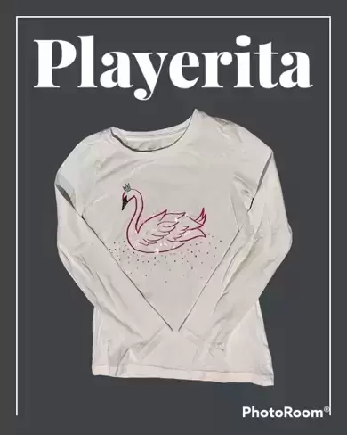 Blusa con cisne. Se utilizó ligeramente, no tiene defectos, es fresca, casual, cómoda y se sugiere no meter a secadora.