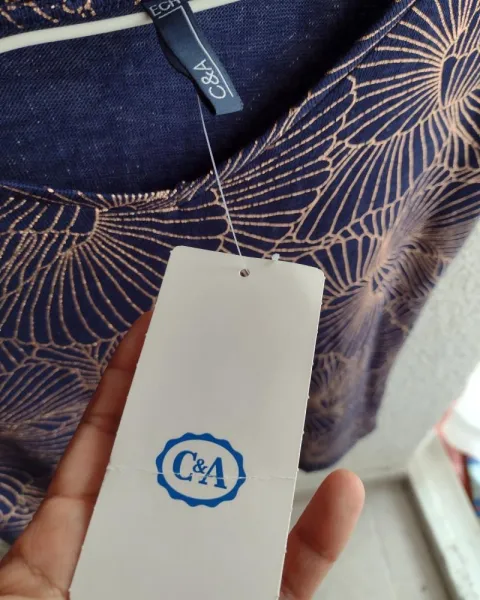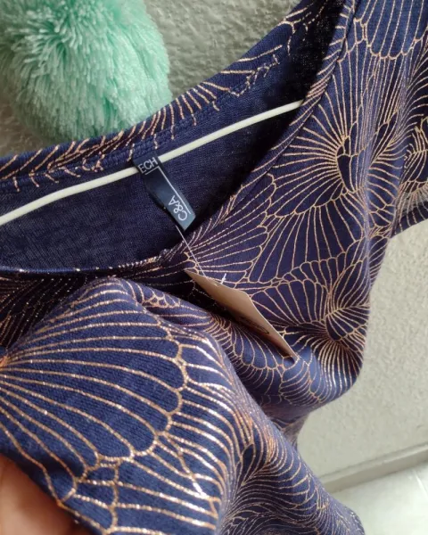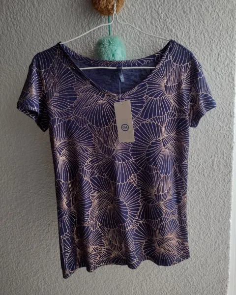 Hermosa blusa azul marino con destellos cobre de conchas marinas. Nueva con etiqueta. Queda a talla chica y mediana.