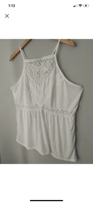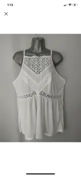 Bonita blusa con encaje y suelta de la parte de abajo. La talla es XXL pero viene reducida a una talla LMedidas aproximadas:56 cm de axila a axila 70 cm largo