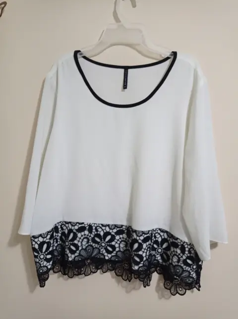 Blusa con encaje. Blusa manda larga con encaje en la parte interior, la tela es fresca