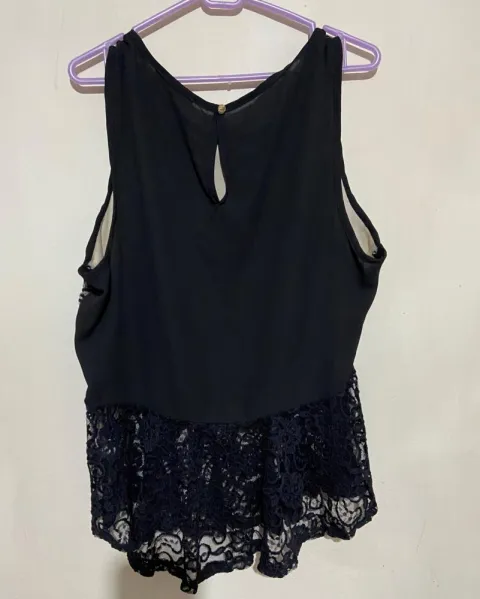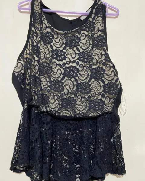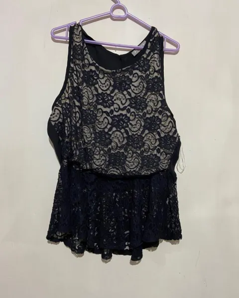 Blusa con encaje. Blusa con diseño de encaje y beige sin manga y suelta con Olanes en la parte de abajo