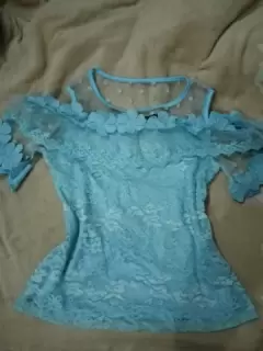 Blusa con encaje azul celeste. Hermosa blusita con encaje azul pastel, con muchos detalles bonitos como se pueden apreciar en las fotos, es talla chica