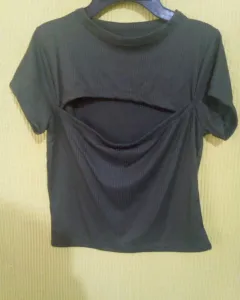 Blusa con escote. Blusa con escote a la altura del pecho , color verde militar cortita 🥰