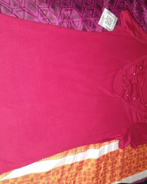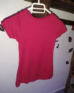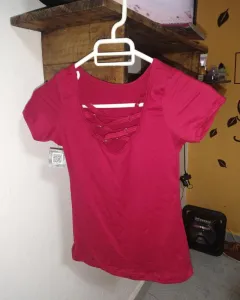 Blusa con escote redondo con hermoso detalle de color rojo con medidas de 45 de ancho y 50 de largo
