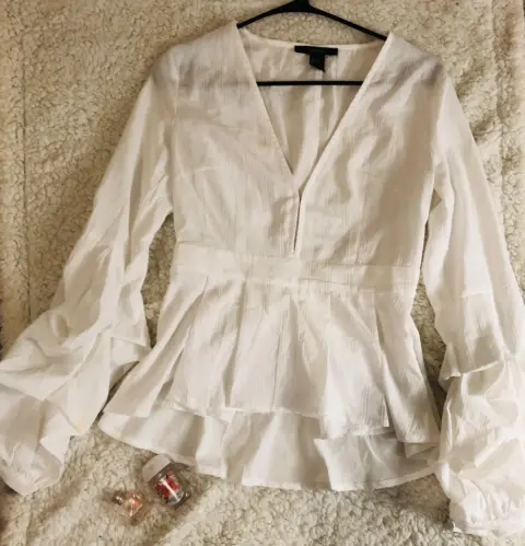 Blusa con escote v. Blusa con mangas tipo campana cintura tipo imperio y escote V
